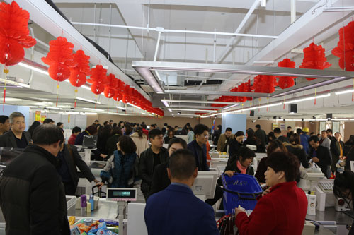 熙熙攘攘的消费者在结账