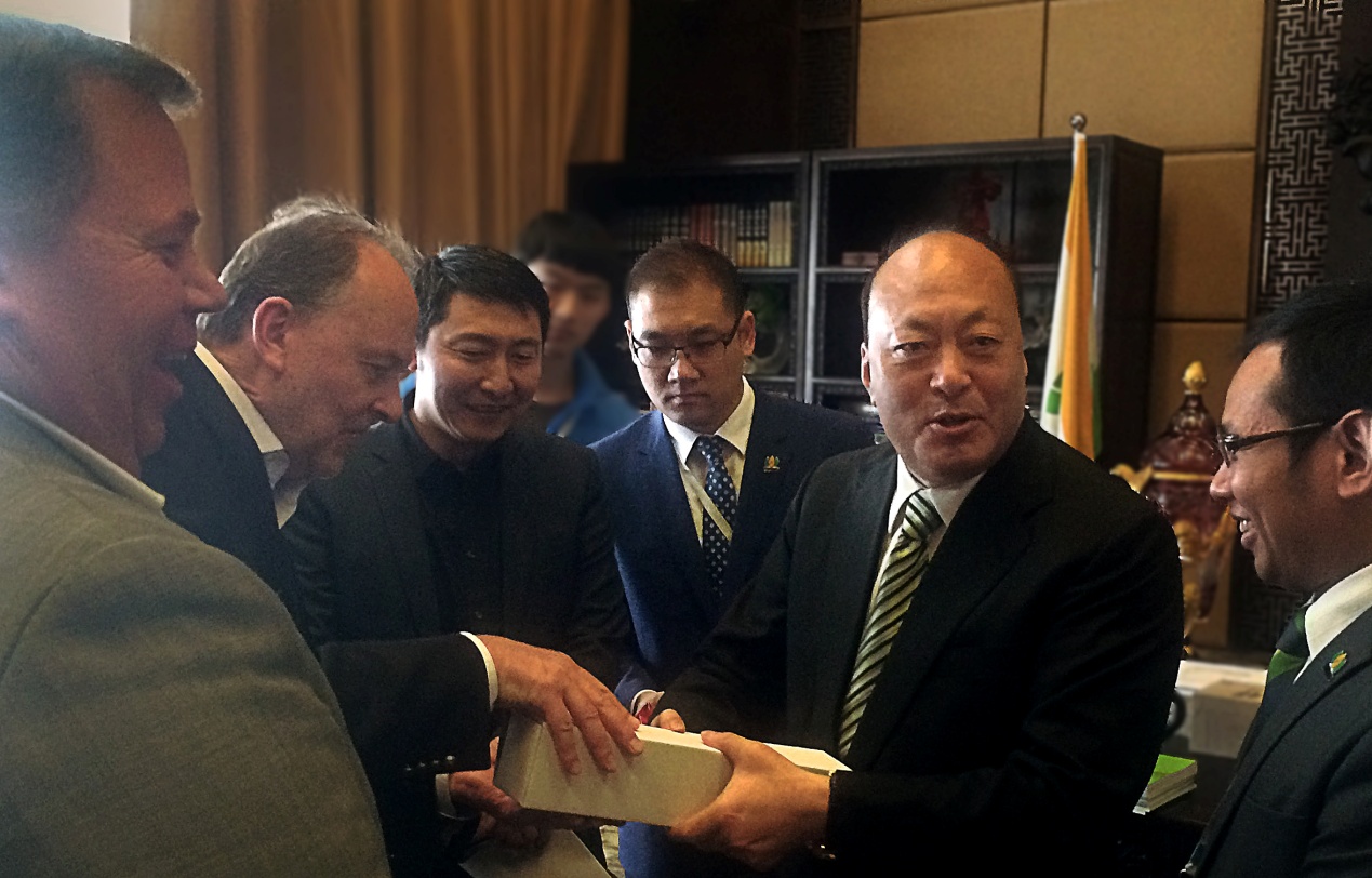 李金元董事长接受Loren Israelson主席赠送的礼物