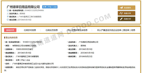 德家为广东第15家直销企业,母体为台港澳独资企业