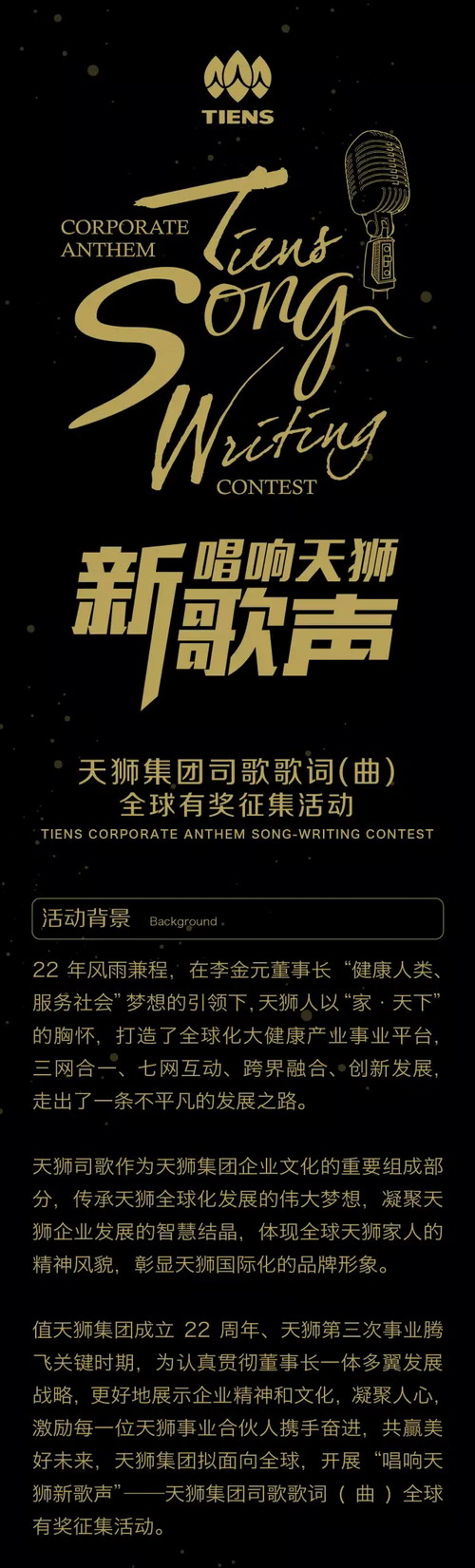 天狮集团开启司歌歌词(曲)全球有奖征集