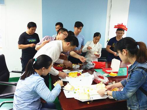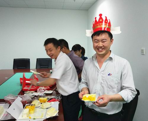 在温馨欢乐的气氛中,大家品尝着香甜的蛋糕和新鲜的水果,尽情地放飞心情。公司副总经理郭正俭先生也在百忙中抽空为寿星们送上了诚挚的祝福,与大家一起分享了生日的喜悦。