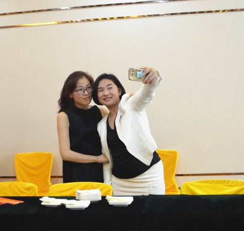 ▲总部的员工开心地热聊,兴奋地拍照,欢乐的气氛充满了整个会议室。