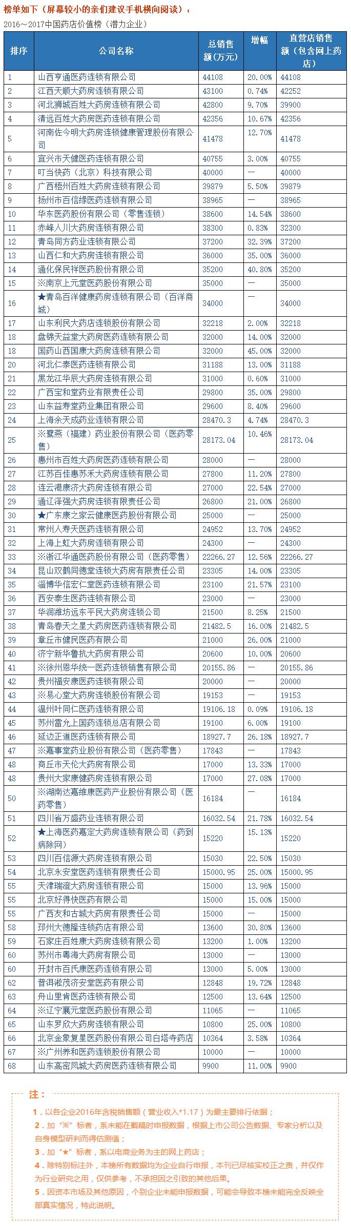 附:2016~2017中国药店价值榜100强