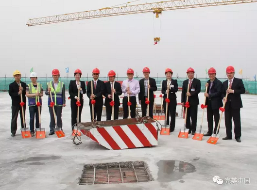 扬州市高新技术产业开发区主任叶华生、中国建筑第三工程局第一公司南京分公司副总经理王俊海、扬州完美日用品有限公司总经理潘联顺、完美(中国)有限公司基建办总监李海涛,以及扬州完美各部门主管参加了封顶仪式。