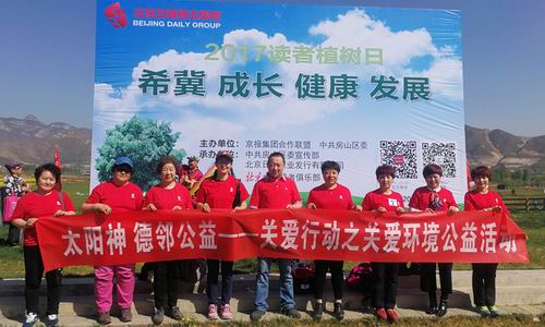 2017年4月22日,太阳神作为赞助商参加了由北京京报集团组织的读者植树日活动,并在活动过程中开展了太阳神德邻公益·关爱行动之关爱环境公益活动。
