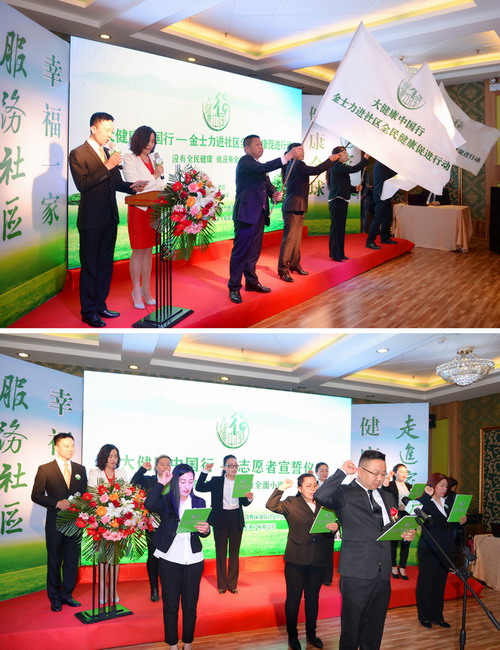 随后,大健康中国行志愿者在李金泽先生的带领下共同宣誓,要践行志愿者精神,尽己所能投身公益事业,不计报酬、帮助他人,服务社会,为构建健康中国、和谐社会贡献力量!