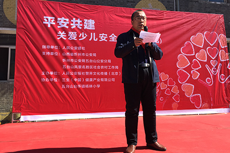 本次活动得到了山西省公安厅、忻州市公安局和三生公司的大力支持。其中,人民公安报社警界文化传播(北京)有限公司常务副总经理杨亚玲,山西省公安厅政治部宣传处副处长胡建华、忻州市公安局党委委员、调研员周亚进,忻州市五台山公安分局政委薛卫东,三生(中国)健康产业有限公司董事长助理刘爱峰,五台山台怀镇杨林小学校长郭鑫等嘉宾出席了本次活动。
