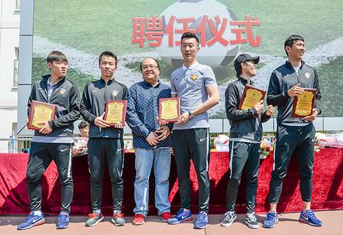 2017年4月28日上午,天津权健足球队走进校园,参加天津大学附属中学春季运动会,指导校园足球队,共同推进校园足球发展。