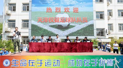 在当天举行的天津大学附属中学春季运动会上,天津权健足球队的张鹭、孙可、刘奕鸣、张修维、张诚等主力队员来到中学校园参加公益活动,这些球员将受聘天津大学附属中学足球队担任指导教练。在活动中,俱乐部和校方互赠纪念品,五位球员还参加了 “十人十一足”的趣味项目,和学校足球队员一起比赛,将整个活动推向了高潮。