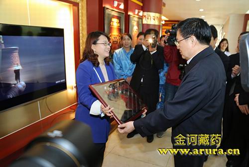 在公司产品展厅,王国生书记为金诃藏药执行总裁牛豫娟颁发了青海省五一劳动奖状牌匾,还为全国五一劳动奖章获得者颁发了荣誉证书和奖章。金诃藏药被授予青海省“五一劳动奖状”荣誉称号,是金诃藏药全体员工奋力拼搏、无私奉献的结果,这也是青海省委省政府给予金诃藏药的莫大鼓励和鞭策。