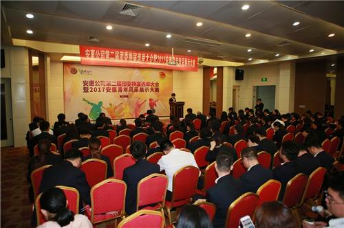 大会上,还进行了2017安惠青年风采展示大赛。安惠公司副总经理曹昌贵致辞,他说安惠为所有员工提供了广阔的发展平台,希望青年人们要把握机会,珍惜光阴,坚持奋斗,学习、成长、改变,争做最美安惠人。