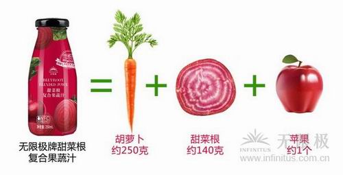 甜菜根复合果汁不仅保留了胡萝卜、甜菜根和苹果中重要的营养成分,口感还特别好!