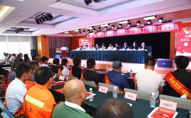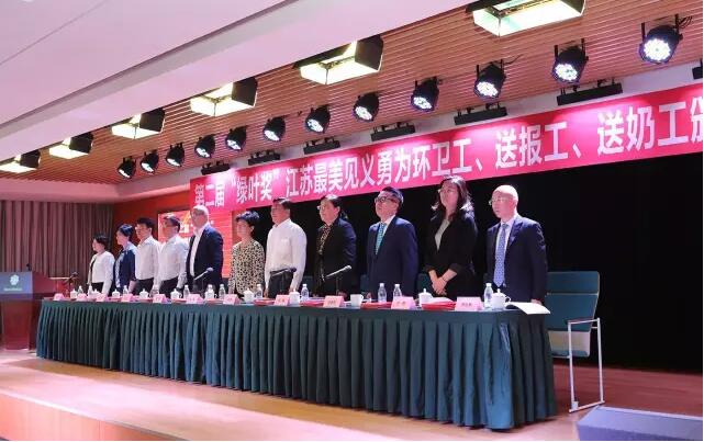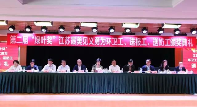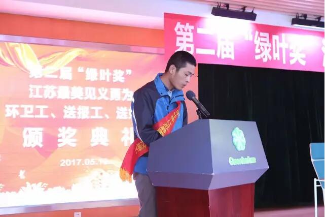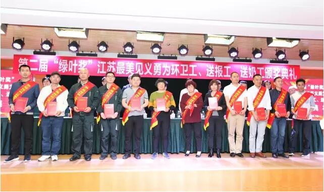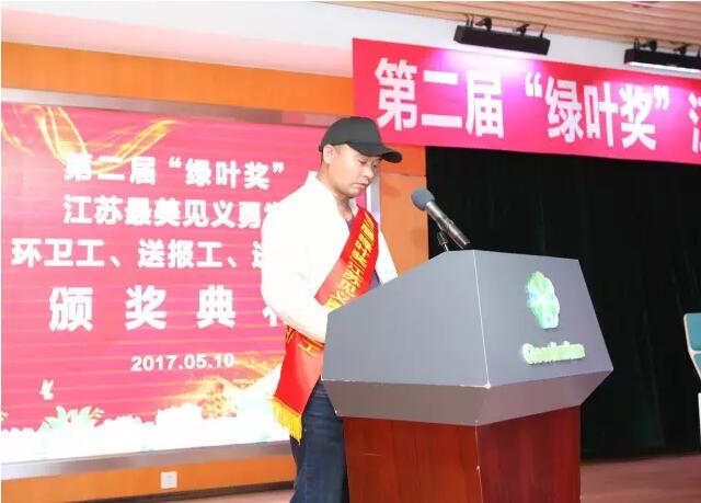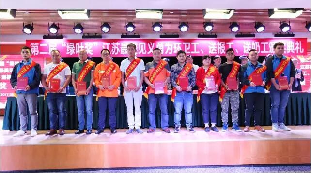 2017年5月10日下午15:00时,由江苏省公安厅、江苏省见义勇为基金会、绿叶集团发起并联合有关新闻单位和网络媒体共同举行的第二届“绿叶奖”江苏最美见义勇为环卫工、送报工、送奶工颁奖典礼在绿叶集团产业园隆重举行。