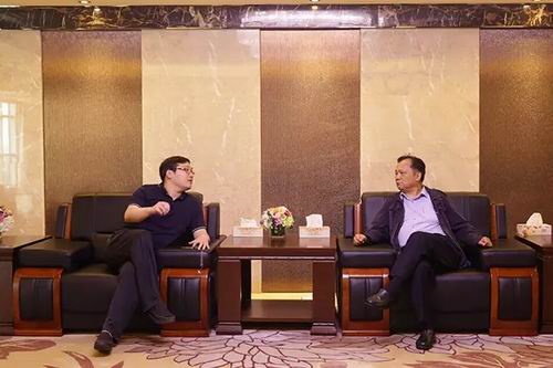 ▲金日集团总裁李冠华与长泰县长陈力予探讨合作项目