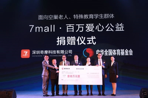 5月19日,“舞动未来”暨全国排舞广场舞推广中心·7mall战略签约仪式在深圳举行。仪式上,广州德家日用品有限公司正式向“中华全国体育基金会舞动中国排舞广场舞公益基金”捐赠100万元人民币,用于援助我国广场舞、排舞事业的健康科学发展,提高广场舞人群整体素质,为贫困人群、空巢老人和特殊教育学生群体的广场舞、排舞运动提供实质性帮助。