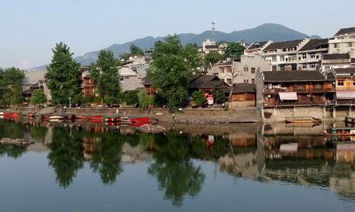随后,伙伴们沿着石板路走到了清水河畔,登上了具有边城特色的拉拉渡。