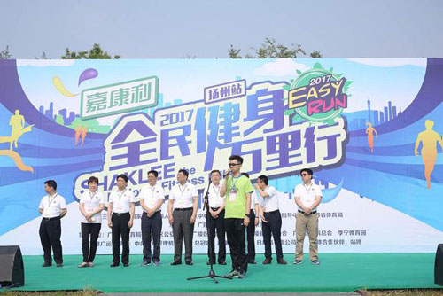 本次“2017年嘉康利全民健身万里行”扬州站活动由国家体育总局人力资源开发中心、国家体育总局职业技能鉴定指导中心主办,广陵区人民政府、扬州市体育局承办,广陵区体育局、广陵区公安分局、广陵区旅游局、广陵区广陵新城管委会、广陵区体育总会、李宁体育园协办,中体经纪管理机构独家推广运营,来自美国的天然营养品品牌嘉康利公司独家冠名赞助了全年活动,全球互联网运动社交领军品牌咕咚为本次活动媒体合作伙伴。