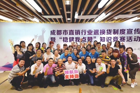 昨日,一场由成都市工商局主办的直销行业退换货制度宣传暨“稳健我点赞”知识竞赛活动,在安利成都体验馆举办。4支参赛队伍你追我赶,激烈争抢“退换货制度知识问答”,并赢得成都市工商局直销监管分局,以及前来观摩的宇航人、隆力奇、康婷、康力、天狮、中脉、金士力、福能源8家在蓉直销企业代表点赞。