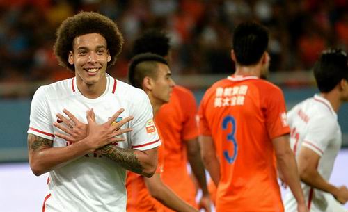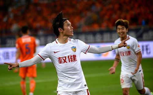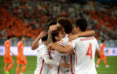 天津权健足球队2比1逆转战胜山东鲁能泰山队