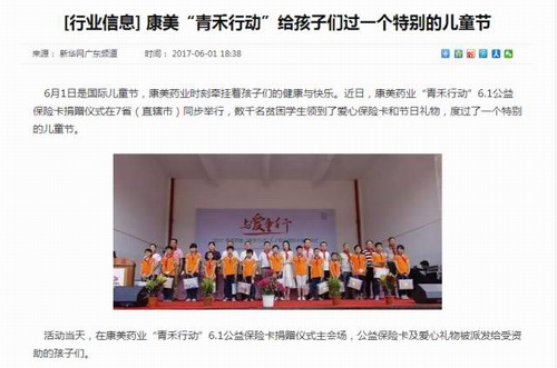 康美“青禾行动•6.1与爱童行”活动受媒体热捧