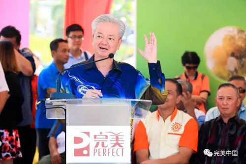 6月8日,马来西亚彭亨文冬政府举办“翠绿文东,欢迎完美”仪式,对远道而来的完美人表示热烈而诚挚的欢迎,并感谢完美公司董事长古润金等华人华侨为推动马中民间交流所作的努力,充分肯定完美公司对马中两国互通、共荣所起的纽带作用。