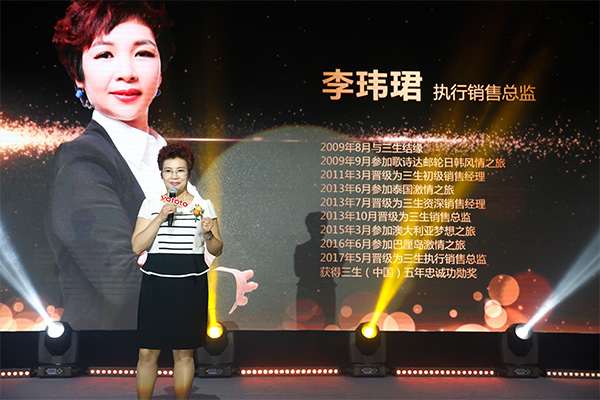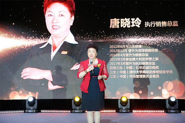 “进入三生,我遵循简单、听话、照做的态度,三生给我带来的是有品质的生活,不论是物质、还是精神,三生给予我的太多太多,在未来,我们一起共同努力、共同奋斗,在三生收获我们的价值与荣耀。”