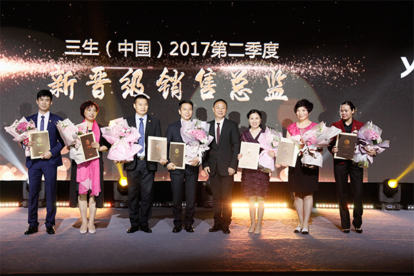 研讨会将三生(中国)2017首届晋级激情之旅推向了高潮,黄金宝董事长为三生新晋级精英亲自颁发晋级奖章,精英们同时收到伙伴们送上的掌声与祝贺。