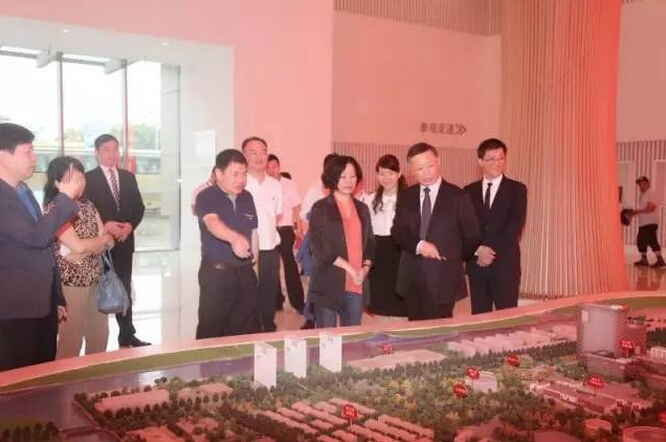 徐董向调研团介绍隆力奇养生小镇沙盘模型