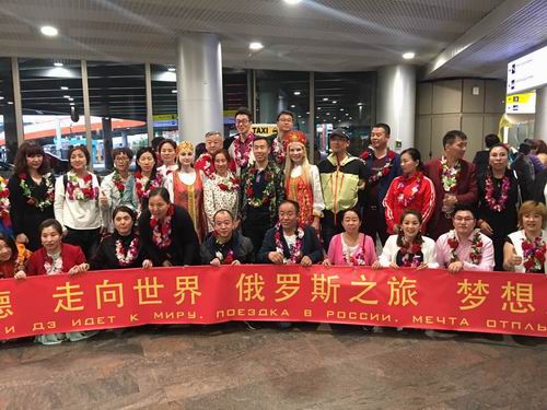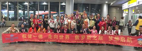 2017年5月17日晚,权健一德精英代表团抵达俄罗斯莫斯科,权健欧亚区员工及权健经销商们在莫斯科谢尔梅杰沃机场为代表团举行了欢迎仪式。以俄罗斯民族服饰盛装出席的欢迎礼宾们为权健一德精英代表团们纷纷送上了花环,并围绕着一德系统领导人姚老师和张老师一起合影留念。当日,莫斯科国际机场F航站楼气氛热烈,如同过节一般!权健人的热情震撼和感染了在场的每一个人!