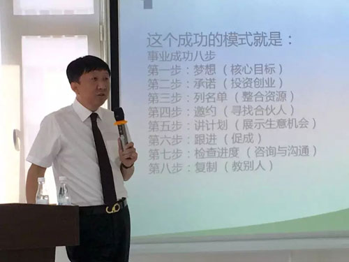 被誉为“东方卡耐基”的杨磊峰院长妙语连珠,金句不断,频频引得学员们热烈的掌声。杨院长的授课方式非常接地气,他总是从生活中的点滴说起,深入浅出地引出道理,欢笑之余更加发人深省。他先从《成功八步》讲起,教授学员们如何一步步接近成功,又和学员们一起分析了失败的原因,最后以20余年的实战经验为大家总结了诸多成功之道。实操性极强的讲解成为起步训的点睛之笔,学员们边听边发出啧啧赞叹,并报以雷鸣般的掌声。