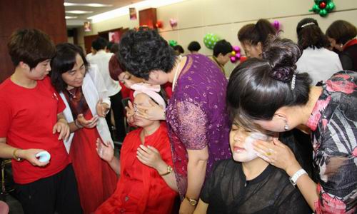 这两位大哥的美容手法可是很妖娆,引起现场一阵阵掌声