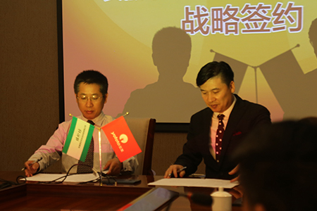 孙鹏博总裁首先代表三生公司与安徽绿珍坊创始人张洁签约