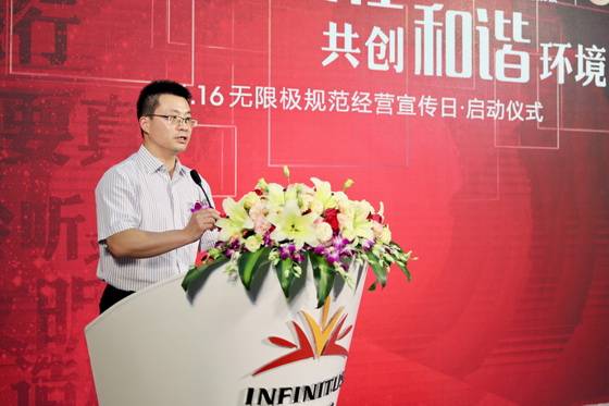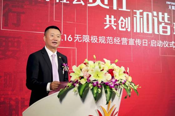 仪式上,黄健龙先生致辞表示:为了深化规范经营从理念到行动的转化,充分激发规范经营在直销行业中积极的行业和社会效应,无限极从一直倡导的创新思维出发,借鉴“3·15”消费者权益日、“地球一小时”等推广理念,期望打造一个以倡导规范经营为核心,对消费者、业务伙伴、行业都能深入人心、影响深远的宣传品牌。