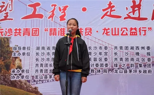 为认真落实党中央、省市委精准扶贫精准脱贫决策部署,进一步整合社会爱心资源,帮助优秀贫困学生健康、快乐地成长,2017年6月16日,希望工程·走进湘西——长沙共青团“精准助扶贫·龙山公益行”活动在龙山县茅坪学校成功举行。