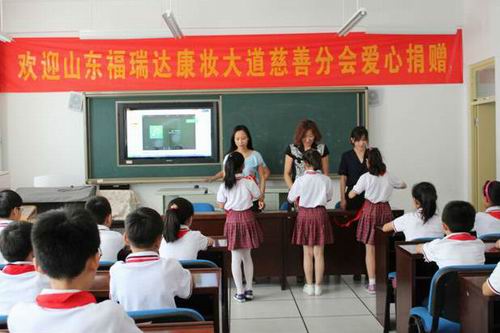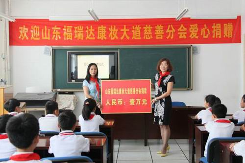 6月14日,福瑞达康妆大道慈善分会走进济南市济洛路小学,为在校学子们送去一万元善款用于捐建“爱心书屋”。福瑞达康妆大道公共事务部副总监靳媛、公共事务部经理闫琳代表公司参加本次活动。