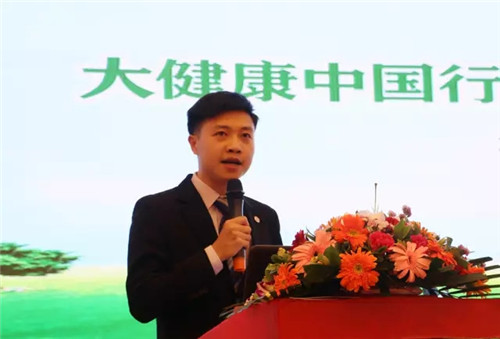 雄壮宏伟的国歌拉开了本次大会的序幕,一段《大健康中国行》视频引导大家进入今天大会的主题。随后金士力重庆分公司经理许萌先生为大会致辞,他首先代表公司对当地政府的大力支持表示感谢,并表示公司将全力以赴落实“大健康中国行”的各项举措,汇集优良社会资源,为社区百姓传播大健康知识、普及大健康教育、提供大健康服务;帮助人们走出健康误区,制定适合自己的大健康管理方案,拥有健康与快乐的生活。