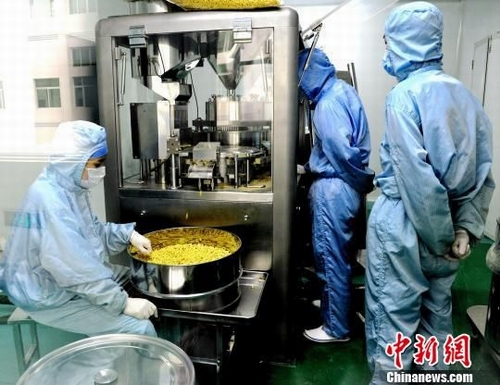 图为安发生物科技园胶囊充填间。 吕巧琴 摄