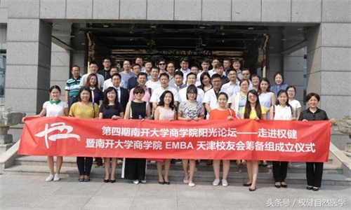 2017年6月27日南开大学商学院一行走进权健集团学习交流,第四期南开大学商学院阳光论坛暨南开大学商学院EMBA天津校友会筹备组成立仪式在此举行。