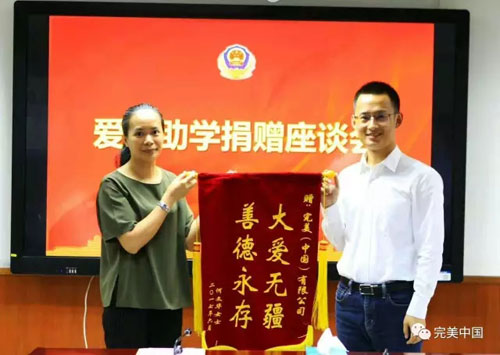 7月4日下午,完美广东分公司将5万元助学金交到了“全国公安系统二级英模”、广州市公安局越秀分局广场派出所原所长谭耀华遗孀何文华女士手上,用于资助其女的学业。广州市公安局越秀分局党委副书记、政委张文扬,广场派出所所长曾志坚等参加了捐赠座谈会。