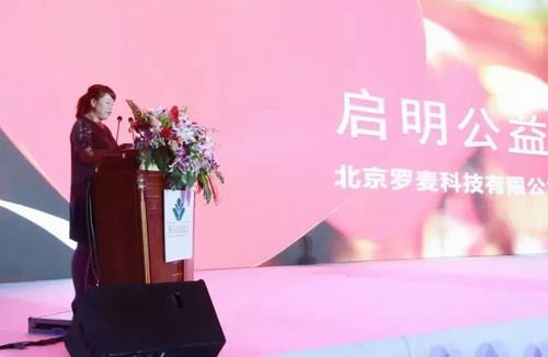 辽宁省铁岭市昌图县大四家子中心小学校长李一杰代表2017年上半年北方大区启明公益受赠方发言。她代表全体受赠方对汪静董事长、启明公益基金会、北京罗麦科技有限公司表示了深深的谢意;并对“老吾老以及人之老,幼吾幼以及人之幼”的公益主题表示赞扬。身为教育工作者,他们将传承美德、传递爱心的这种精神播撒到孩子的教育中去,让孩子们学会在逆境中坚韧,在顺境中感恩。