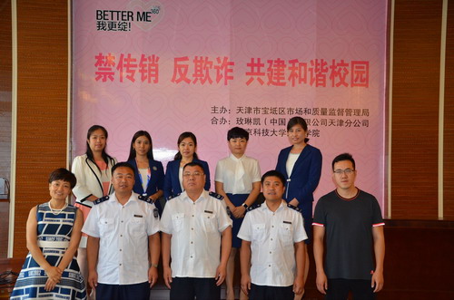 7月4日,由宝坻区市场和质量监督管理局主办,玫琳凯(中国)有限公司天津分公司协办的“禁传销反欺诈共建和谐校园”活动在北京科技大学天津学院顺利召开。现场参与师生300人次。宝坻区市场监管局竞争执法科张永聪科长现场为同学们做了详细的法规宣讲与案例分析,教大家如何规避传销风险、防止上当受骗,并认真耐心的与同学们互动,答疑解惑。