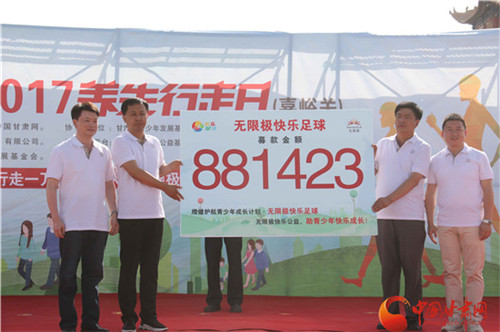 同时,这还是一场奉献爱心的公益“善”行。截至嘉峪关站,无限极2017行走日系列活动共筹集到881423元善款,将全部用于无限极(中国)有限公司与中国青少年发展基金会、思利及人公益基金会携手打造的首个聚焦于为贫困地区儿童普及足球运动的公益项目,让农村和贫困地区的儿童有机会了解并体会足球所带来的快乐,传播足球文化。