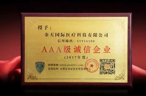 金天国际被授予"AAA级信用企业" 荣誉称号