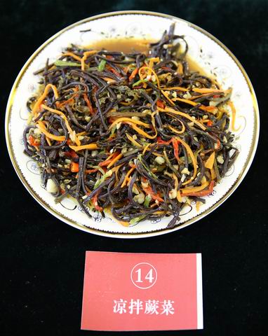 ▲《凉拌蕨菜》获得了美食大赛冠军。蕨菜是东风村常见的野菜,堪称野菜之王,它的营养价值非常高,深受大家的欢迎。