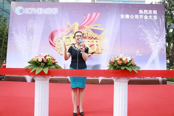 庆典中,直销事业部执行总裁陈红女士首先代表董事长刘小兵先生、总裁杨琪女士对安徽省分公司的成立表示热烈的祝贺,并对在场的康婷家人们致以衷心的祝福和感谢。陈总还对公司美好的发展前景进行了展望,并表示康婷公司在未来的日子里,将始终坚守“为健康不断探索前沿科技,为美丽专注创造需求产品”的服务理念,不懈追求,不断进取,打造出可持续发展的大健康产业。