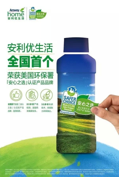 自2017年7月起,安利优生活®家居护理系列9款产品,通过满足更安全选择项目的严苛标准,荣获了美国环境保护署(EPA)颁发的“安心之选”认证,正式拥有更安全选择标签使用资格。