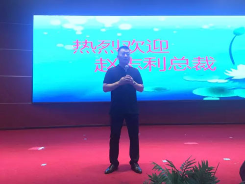 兆和系统总裁赵志利致欢迎词。赵总对各位家人的到来表示热烈的欢迎,并从前沿科技、专业的科研团队、标准化生产车间等多个角度阐述了双迪产品的高品质;同时还与家人分享了会员福利和重磅利好政策。赵总激情的分享深深吸引着在座的每位家人。