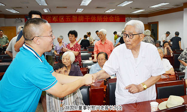 上午9点30分,由胡国安董事长、刘云书记带队的绿之韵党团成员驱车抵达湖南省军区五里牌干休所。刚入会场,绿之韵爱心慰问成员们就受到了革命老前辈们的热烈欢迎,致以笔挺的军礼,军民鱼水之情尽展其间。慰问座谈会上,湖南省军区五里牌干休所政委谢祝安、所长周祖德,对绿之韵集团胡国安董事长与爱心志愿者的到来表示衷心感谢,并详细介绍了五里牌干休所的老军人现状。胡国安董事长细细聆听,他在会议上说到:90年来,中国人民解放军在中国共产党的领导下,为了人民解放、民族独立、国家富强,进行了英勇顽强、艰苦卓绝的斗争。无论是在烽火连天的战争年代,还是在和平建设和改革开放时期,英雄的中国人民解放军,为祖国、为人民都作出了巨大贡献。绿之韵集团作为一家具有高度社会责任感的民族企业,有责任及义务为社会奉献出我们的一份力量。为了感谢老前辈们在战争年代为国家立下的汗马功劳,在八一建军节来临之际,我们向所有的老革命、老前辈,我们伟大的英雄致以最诚挚的敬意。随后,胡国安董事长与他们一一握手、问候,祝他们节日快乐,健康长寿。