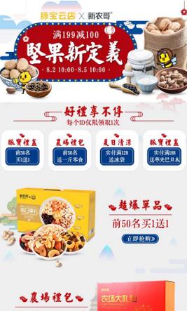近期,脉宝云店推出“坚果新定义”活动,给大家献上高品质的坚果,活动好礼享不停。其中,脉宝礼盒前50名买1送1,农场礼包前50名送一斤零食,夏日清凉实付满128送冰袋,脉宝礼盒实付满188送枣夹巴旦木,更有满199减100的活动。坚果控们看过来,不要错过健康美味零食哦。