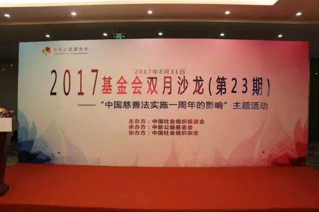 8月31日下午,由中脉公益基金会承办的中国社会组织促进会基金会分会双月沙龙(第二十三期)在中脉公益基金会会客厅举办。本期沙龙围绕"中国慈善法实施一周年的影响"这一主题来展开,分为主题演讲和圆桌论坛部分。
